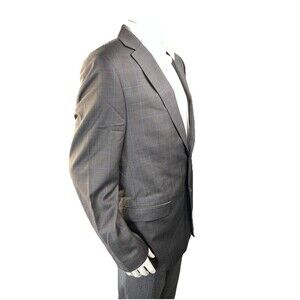 The NWOT Combatant Gentleman Men's 44L Blazer in Dark Gray Windowpane Check is a stylish and versatile slim fit sport coat made of high-quality wool. This blazer features a classic flat front design with a double-vented back for a clean and tailored look. Perfect for various occasions like weddings, parties, casual wear, or business settings, this blazer is a timeless addition to any man's wardrobe. With a chest size of 42 and a regular fit, it offers a flattering silhouette for a sophisticated and put-together ensemble.