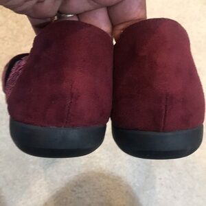 NWOT Comfortview Burgundy Stretch Woven Fabric Crisscross Design Flat Shoe-8WW