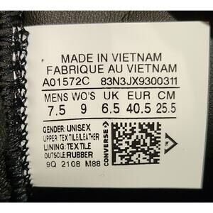 These sneakers are part of the Converse product line and were manufactured in Vietnam in 2021. They are customized and feature the theme of stars and sports. The insole is made of fabric and the upper material is leather. These sneakers are perfect for men as they are a size 7.5 US and 6.5 UK, while women can also enjoy them as they are a size 9 US.