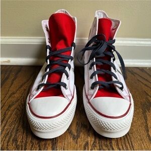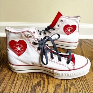 NWOT Converse Platform Lift High Top Custom Shoes Made with Love Heart Patches
