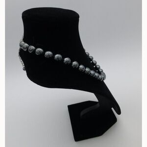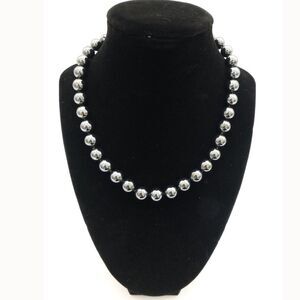 NWOT Cookie Lee Beaded Ball, Dark Silver/Black Chrome Necklace and Bracelet Set