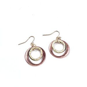 NWOT – Copper & Gold Tone Open Circle Dangle 1.5” Fishhook Earrings. Earrings are two rings, and the gold tone ring has a hammered texture. Earrings are fishhook, hang 1.5” in total length, and the copper tone ring is 1” in diameter. Earrings are new without tags and are from overstock or liquidated merchandise. Earrings are in great condition.