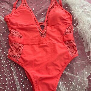 NWOT Coral Lace Cutout One Piece Swimsuit Women's Size Medium