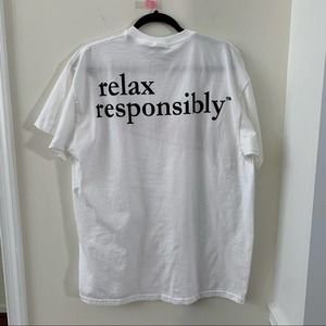 White T-shirt with logo on front and back. 100% cotton and pre-shrunk.
