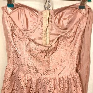 NWOT Beautiful lace corset-style layered top with front hook&eye closures. Size-small, color-dust rose! Never worn. 🎀