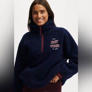 NWOT Cotton On Body Balance Half Zip Sherpa Pullover Jacket. Size small. Navy in color. See details in photos.
