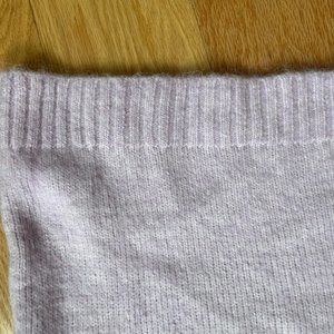 This sweater is stunning. Super soft feel, the most unique purple tinted baby pink. Fits slight cropped and boxy, True to size.
