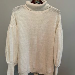 SUPER CUTE size XL cream NWOT knit sweater with a high neck, dolman sleeves, and a relaxed fit.