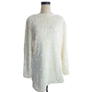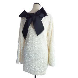 NWOT Cream White Sequin Bow Mini Dress Tunic M