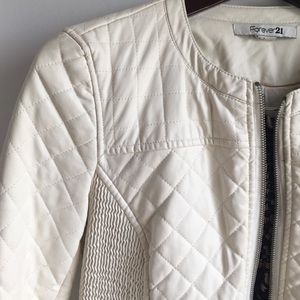 Soft creme jacket with zip pockets and zip front. Never worn and matches with everything, throw it over a navy top for work or dress it down for a casual look. Goes amazing with mocha and tan dresses and shoes