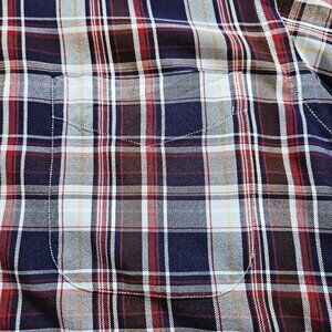 New without tags! Super soft plaid shirt (not flannel) features tones of mostly blues and red.
