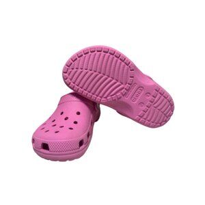 Adorable Girls’ Classic Crocs in bright pink, youth Size 1. These iconic clogs are lightweight, comfortable, easy to clean, and perfect for everyday wear — from school days and playtime to outdoor adventures and summer activities.