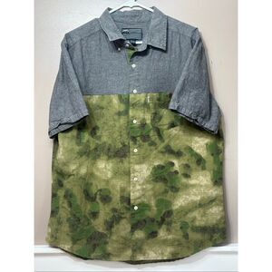 NWOT Crooks & Castles Green Map Tree Camo Short Sleeve Button Up Shirt Men's XL