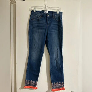 NWOT Crown & Ivy Straight Leg Jeans with Design on bottom size 4