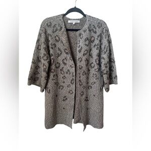 NWOT Cupcakes and Cashmere Kline Leopard-Print Open-Front Cardigan Size Small