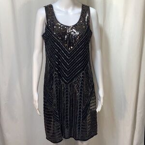 NWOT Cupio Black Beaded Sequin Embellished Sleeveless Shift Evening Dress Sz 10