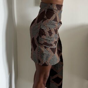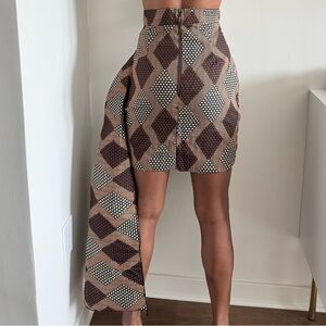 NWOT Custom Made African Print Skirt with Drape Detail in Brown