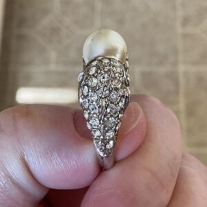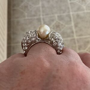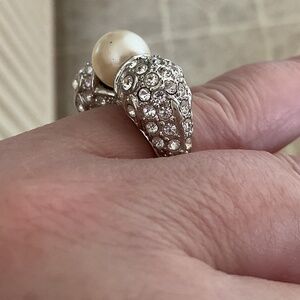 NWOT Custom Made Jewelry Silver Coat Faux Pearl Crystals Ring Size US 8