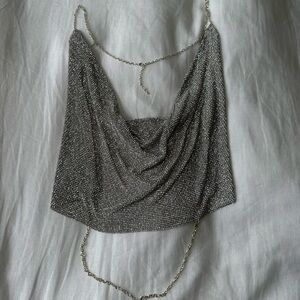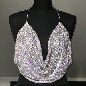 Rhinestone crystal chain top in silver - one size. See measurements in photos.