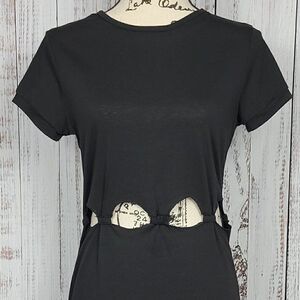 NWOT Cut Out Knotted Black Fitted Short Sleeve Bodycon Chic Sexy Mini Dress