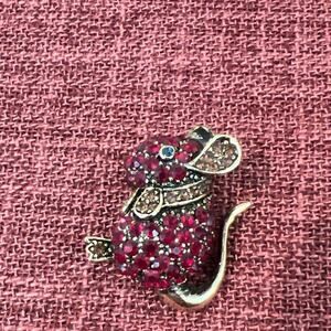 NWOT Cute Mouse Pet Sparkle Red Rhinestone Gold Tone Metal Pin Brooch