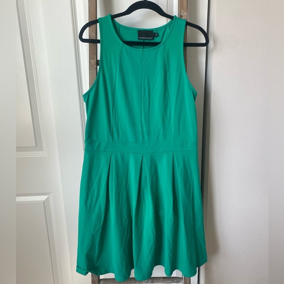 This chic green mini dress by Cynthia Rowley features a sleeveless design with a crew neck and a flattering fit and flare silhouette. The pleated skirt adds a touch of elegance, making it ideal for casual, work, or cocktail occasions. Its vibrant color and lightweight fabric make it a standout piece for warm weather.
