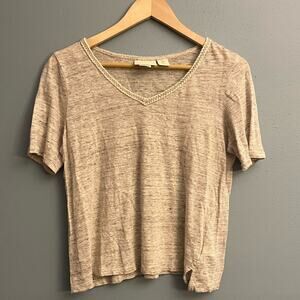 NWOT Cynthia Rowley tan T-shirt with metallic braided neckline. 100% linen. Size M
