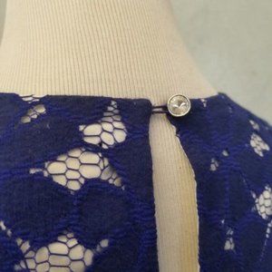 Brand new without tags, never used. Cynthia Steffe royal blue lace 3/4 sleeve dress, with a rhinestone back button..
