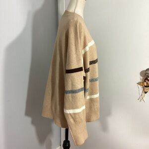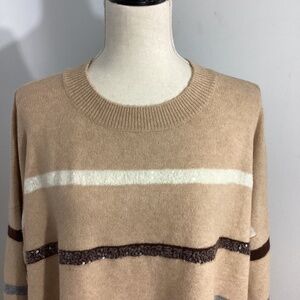 NWOT DANIEL RAINN SIZE XL KNIT SWEATER BEIGE STRIPED SEQUINS