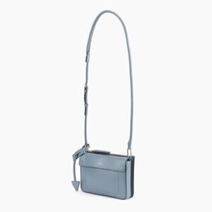 DELAROQ Troisième Crossbody baby blue bag. Troisième refers to the three compartments provided by the triple gusset construction and a nod to the third arrondissement in Paris that served as inspiration for the collection.