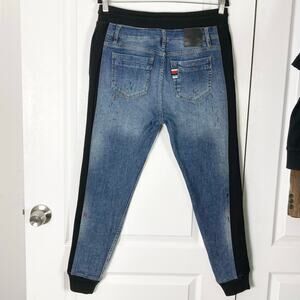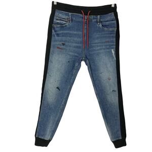 NWOT DESIGUAL Jeans Jogger Sweatpants 32 High RiseBlue,Paint-Splatter,Logo
