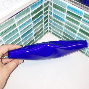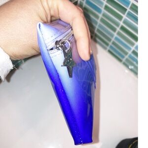 NWOT DIOR Ombré Patent Leather Zipper Pouch Blue & Silver 8” x 5”