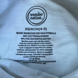 Color: white with custom print. Fabric: 60% cotton, 40% polyester. Very soft and comfy. Purchased, but did not wear.