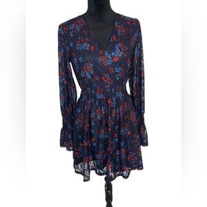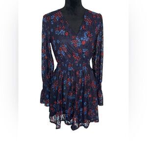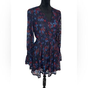 NWOT DISNEY PRINCESS WOMENS BLUE FLORAL LACE LONG SLEEVE V-NECK DRESS SIZE SMALL