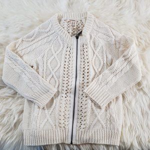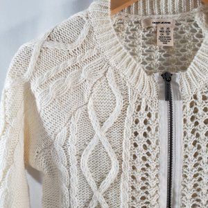 NWOT DKNY Cable Knit Zipper Ivory Cardigan Size XS