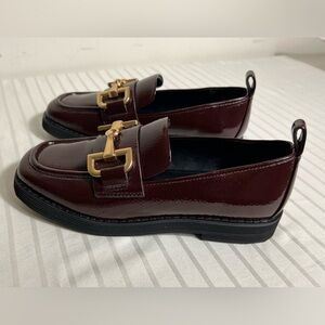 NWOT DKNY Kylan Loafer Mary Jane’s Maroon with gold Square toe Size 5.5M