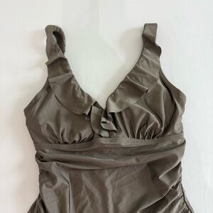 NWOT DKNY Ruffle Plunge One-Piece Swimsuit Olive Green