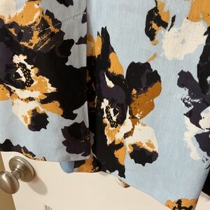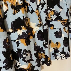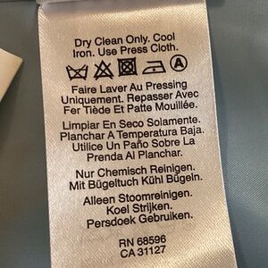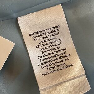 Linen and rayon blazer with flap pockets and back vent. Fully lined. Measures about 36" around the waist; 40" around the chest. Sleeves are about 26" long. Jacket is about 26.5" long. Envelope with extra button is still attached. No tags, but never been worn.