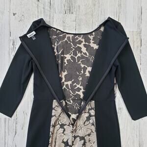 NWOT DKNYC Black Gold Metallic Floral Sheath L/S Mini Dress Women's Size 8