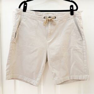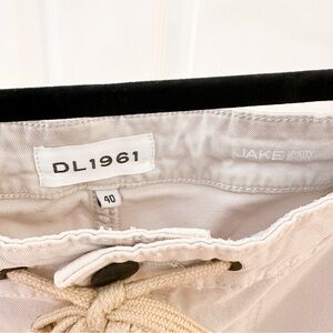 New without tags. DL1961 Jake Utility Shorts Drawstring Waistband Tan. Size 40. Button and zip closure. Side slit and back snap button pockets. Flat front.