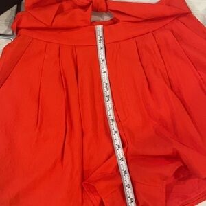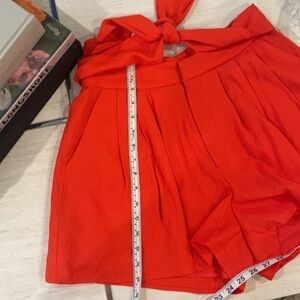 Do+Be brand orange shorts with adjustable sash tie around waist. Stretchy waist band for comfortable fit. Lining underneath so shorts are not see through. Can be worn high waisted. Women’s size large. New with out tags. Measurements and material on photos