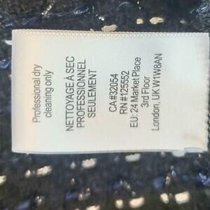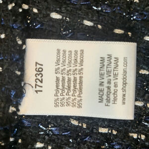 Black and Blue Tinsel with white Bounlce Collarless, Open Front, Long Sleeve, with Peplum waist. Absolutely gorgeous!! In perfect new condition. # BOUNLCE JACKET, #TWEED BLAZER , #LADY JACKET, #BLACK/BLUE TWEED, #TWEED.