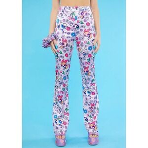 NWOT DOLLS KILL x Powerpuff Girls Flare Pants Large Purple Satin (32x32) Goth