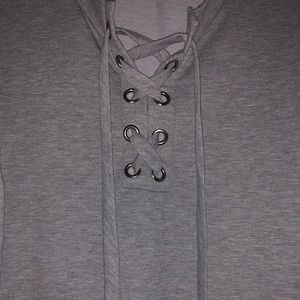 NWOT size large long sleeve T shirt dress. Cute tie front detail. Fun dressed up with heels or down with converse. Bought from Papaya, tried on and removed tags, never worn otherwise.
