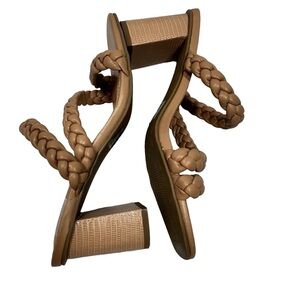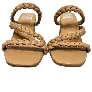 NWOT DV Dolce Vita Pang Slip On Braided Strappy Chunky Heels Sandals Tan Size 9