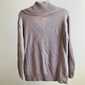 Quarter button-up sweater with soft touch fabric. Versatile high collar can be converted into a generous turtleneck or an off-the-shoulder look. Size L also available, see other listing!