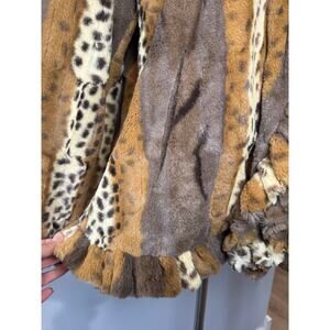 NWOT Damselle New York Faux Fur Ruffled Coat Size XL, Brown Animal Print Shimmer