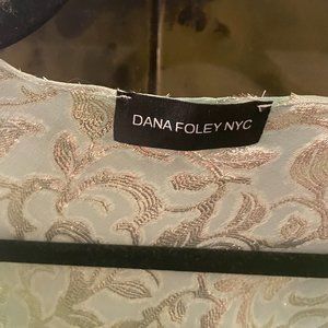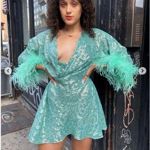 NWOT Dana Foley NYC Cowl Neck Feather Dress Green Lurex