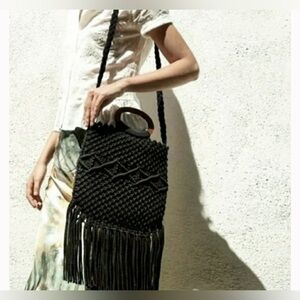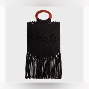 NWOT Danielle Nicole Macrame Crossbody Fringe Wood Handle Bag in Black