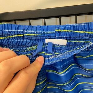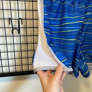 Women’s Danskin sport shorts. Shorts are blue with white sides & like green & blue patterning. Waistband has a drawstring for adjusting. Size large. Smoke free home!